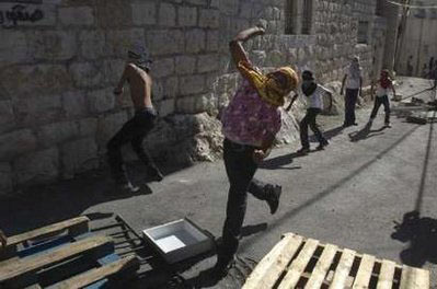 الثلاثاء 6 أكتوبر 2009 في حي رأس العامود: المحتجين على إغلاق المسجد الأقصى المبارك بينما يؤمن الآلاف من جنود الاحتلال مسيرة للمستوطنين اليهود داخل أحياء القدس